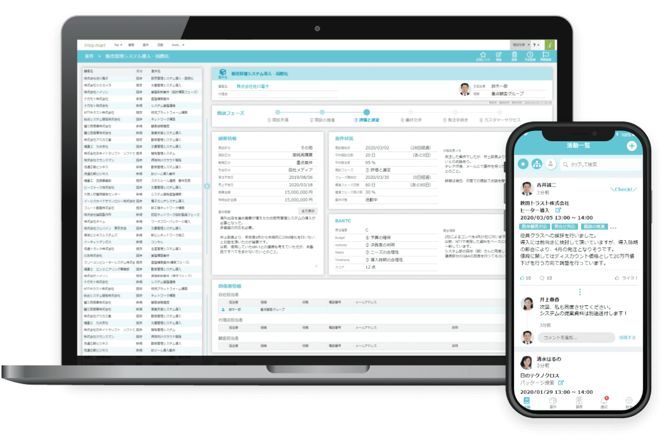顧客情報や営業活動の進捗を一元管理し、リアルタイムで可視化。データ分析により、顧客ニーズや傾向を把握し、効果的な営業戦略を立案。データに基づいた営業活動で、成約率と顧客満足度を向上させます。