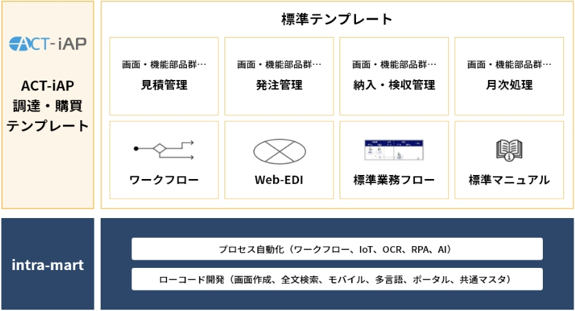 ACT-iAP調達・購買テンプレートは、業務改革とローコード開発を組み合わせることで、