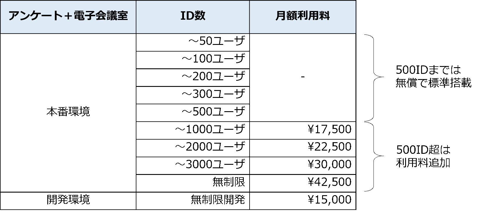 (500IDを超える場合は別途差分の利用料が必要となります)